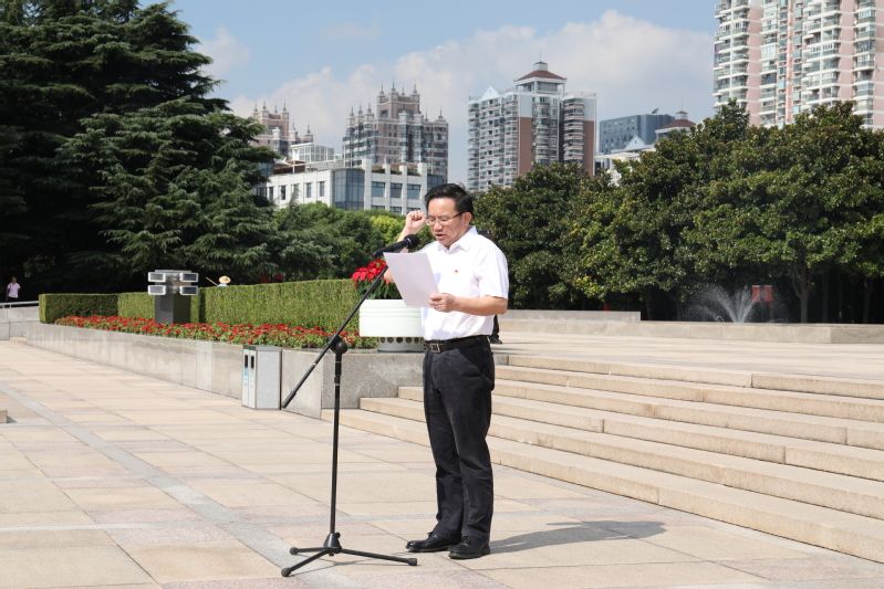 金秋九月、松柏苍翠,龙华烈士陵园革命烈士纪念碑广场气氛庄严,“丹心碧血为人民”几个大字在阳光的照耀下格外醒目。在军乐队伴奏下,校领导和全体教师一起,高唱雄壮的国际歌。在向革命烈士敬献花篮后,全场肃立,向为中国人民解放事业和共和国建设事业英勇献身的烈士们三鞠躬。全体党员在党委书记夏小和的带领下,在鲜红的党旗面前,重温入党誓言。