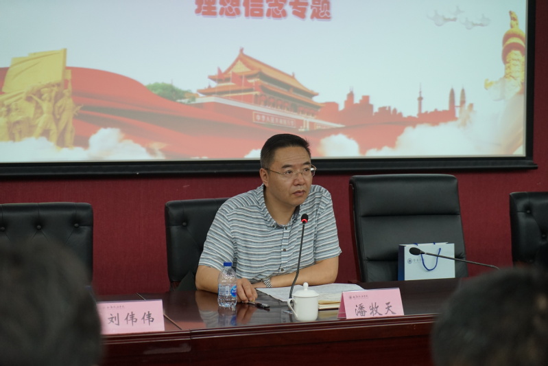 储德峰就如何在日常生活中坚持理想信念作发言。号召广大师生明确社会发展方位、提高个人修养,将理想信念融入到生活中,做有情怀之人,以习近平新时代中国特色社会主义思想武装头脑、指导实践、推动工作。
