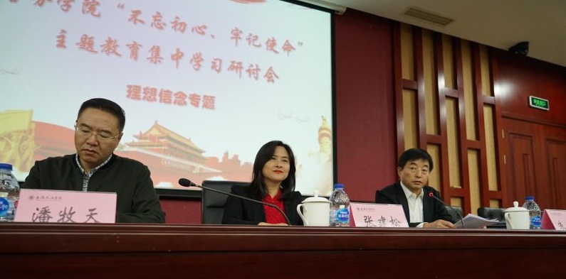 10月15日下午,警务学院“不忘初心、牢记使命”主题教育理想信念专题研讨会在综合研究中心107会议室顺利举行。本次研讨会由新华社高级记者、上海分社首席记者、闵行区政协委员张建松导读,警务学院党总支书记朱和平主持。校党委副书记、纪委书记潘牧天、中国-上合基地办文献信息部主任张少英、警务学院党总支副书记储德峰、党委宣传部刘伟伟及警务学院全体党员教职员工和学生骨干参加了本次研讨会。
