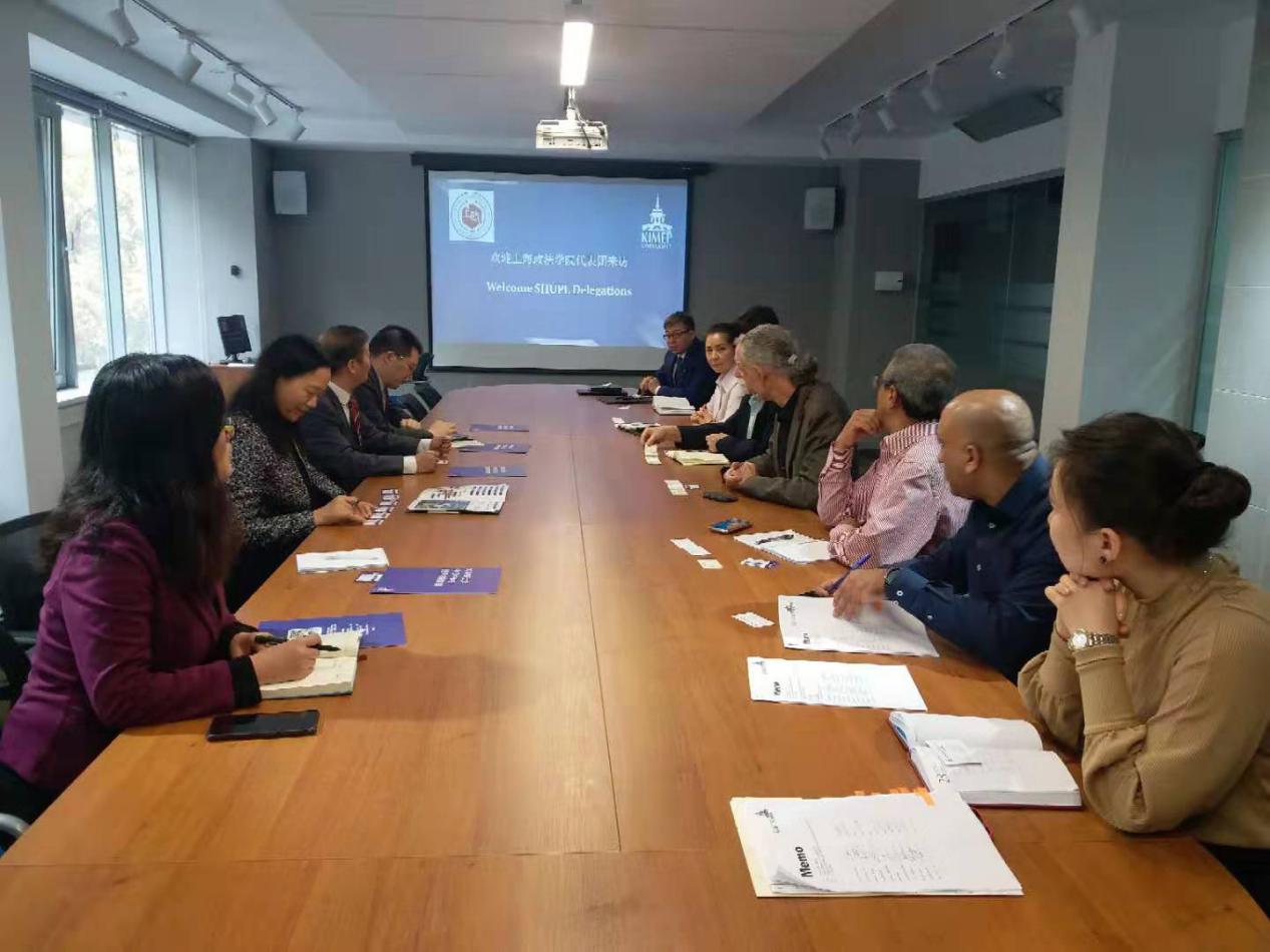 在阿拉木图创新与理工学院ACIT,代表团受到该校校长Ronald Voogdt、学院创始人及董事长哈力曼的热情接待。校方向代表团介绍了阿拉木图创理学院的办学理念及未来发展规划,双方就合作办学及上海政法学院在阿拉木图创理学院设立中亚留学生生源地(预科中心)等事项进行了磋商,并达成共识。