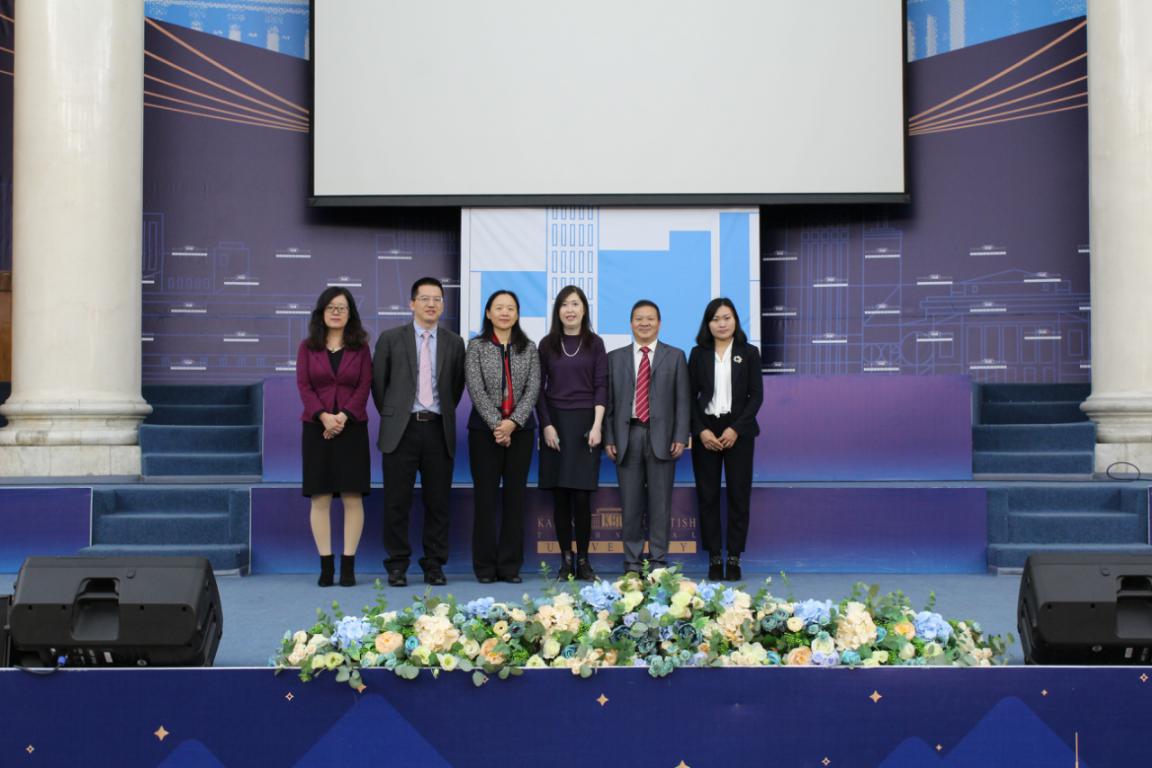 作为此次访问的重点,代表团来到哈萨克斯坦顶尖高校KIMEP大学,与该校国际交流处处长、中国事务处处长、人文与教育学院院长、高管培训中心主任、以及行政学院、商学院、法律学院教授代表进行了深入交流。目前,KIMEP大学已与十多所国际一流大学合作办学,颁发双学位;与北京大学等一流高校建立了友好合作关系;学校每年接受国际留学生100多名,外派国际交流学生250多名,2016-2017学年该校授予的学生奖学金达100万美元,目前有300多名国际学生在此攻读学位。双方就学生互换、教师互访、合作研究、合作论坛、联合培养博士生、互聘外籍教授讲学、共同促进两校国际化发展等方面达成共识。