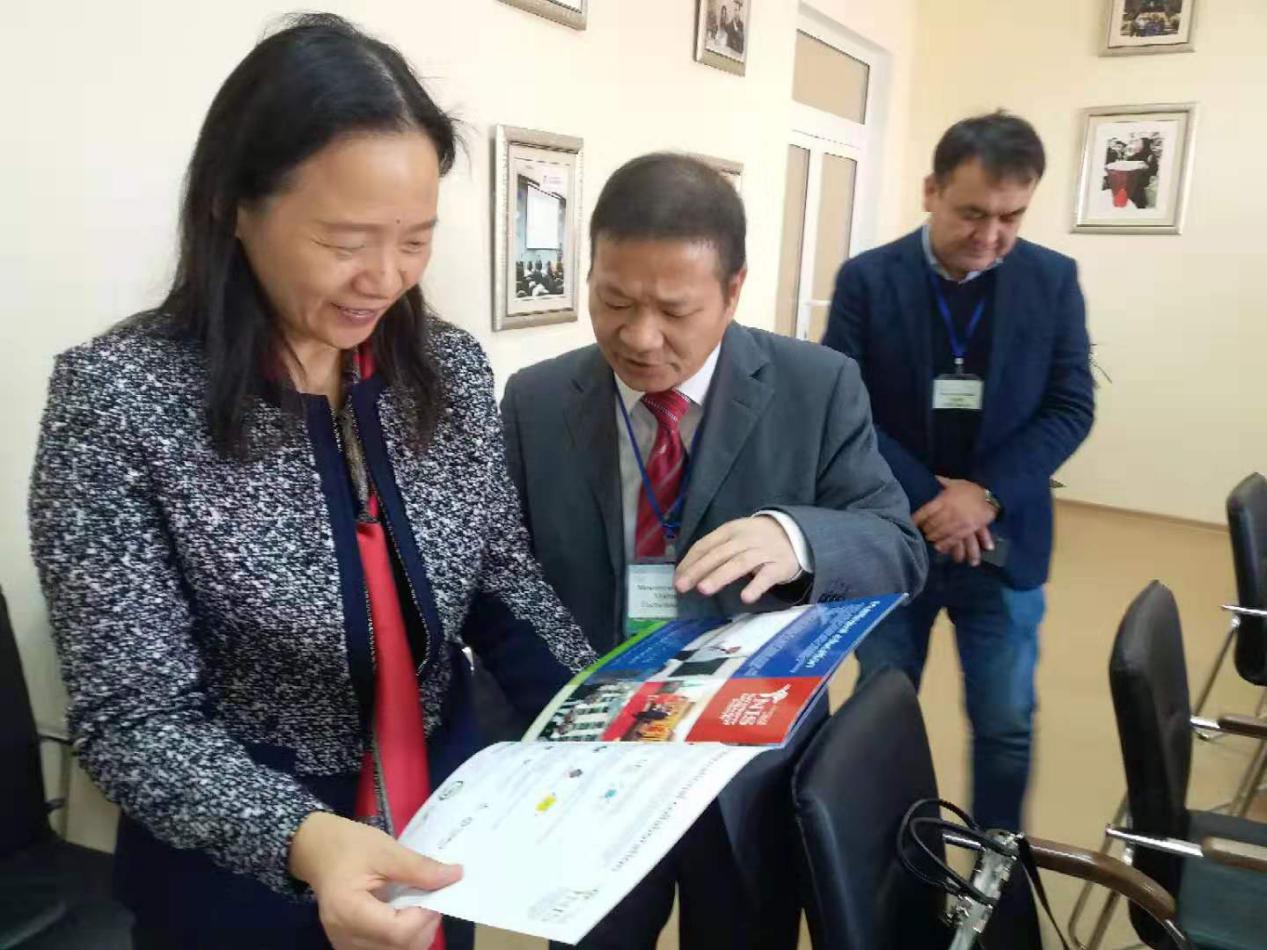 在哈萨克斯坦访问期间,代表团首先前往英哈技术大学,受到了该校国际交流处处长阿克热洛娃博士的热情接待。阿克热洛娃向代表团介绍了该校的历史和现状,着重介绍了该校在政府支持、校企合作、国际化办学方面取得的成绩。双方就两校间学生互换、教师互访、科研合作、互办夏令营等方面达成一系列共识,并约定尽快启动互访计划,落实合作意向。
