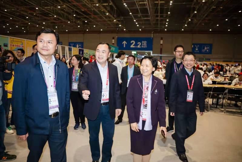 11月9日,市政府副秘书长虞丽娟、市教委主任陆靖一行在团市委副书记邬斌、我校党委副书记刘刚的陪同下,慰问我校正在进博会服务的志愿者。