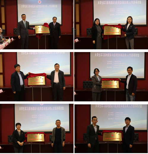 侯怀霞代表法律学院与上海金茂律师事务所、郑州市中原区人民法院、山西省长治市退役军人事务局、上海徐汇区司法局社区矫正中心、上海申申律师事务所、上海通佑律师事务所六家单位负责人签署了实习基地共建协议,并举行了揭牌仪式。(袁智、张东洋 撰稿)