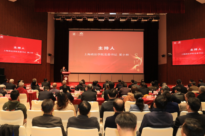 上海市法学会会长崔亚东,上海市委政法委副书记章华,原上海市政协常委、上海市司法局局长缪晓宝,原上海市司法局党委副书记、上海政法学院党委书记刘江江,上海市司法局党委委员、一级巡视员刘平,上海市高级人民法院副院长林立,上海市人民检察院副检察长陶建平,上海市国家安全局副局长朱强,上海市公安局指挥部副主任董斌等上海市政法系统领导;松江区人大常委会主任唐海东,青浦区委副书记杨小菁等学校驻地领导;华东政法大学党委副书记、校长叶青,东华大学副校长邱高,上海外国语大学副校长林学雷,上海大学副校长吴明红,上海对外经贸大学副校长陈洁,上海视觉艺术学院党委副书记、副院长俞振伟等兄弟高校领导;原上海政法学院校长金国华,上海市委党校副校长、原上海政法学院党委副书记副校长谢根华,上海商学院副院长、原上海政法学院教务处处长陈剑峰,上海社会科学院法学研究所所长、原上海政法学院副校长姚建龙,上海政法学院人工智能法学院专家委员会主任、原蚌埠市委副书记市委政法委第一书记刘学尧,原上海市政法管理干部学院、上海大学法学院院长潘国和,原上海政法学院党委副书记、纪委书记霍光,原上海政法学院副院长阎立,原上海政法学院副院长曹文建和上海政法学院党委书记夏小和,上海政法学院党委副书记、校长刘晓红,上海政法学院副校长胡继灵等领导出席了大会。大会由夏小和主持,刘晓红致辞。