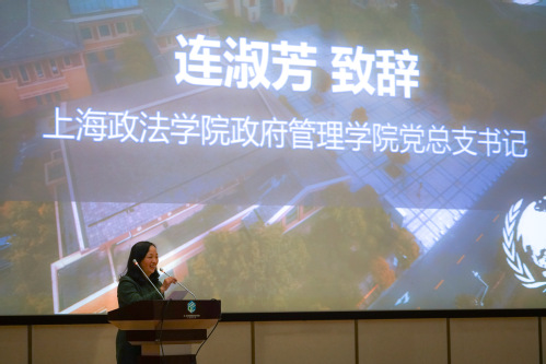 连淑芳在致辞中回顾了上政模联成立11年来所付出的努力以及收获的辉煌成绩,介绍了第七届模拟联合国大会的委员会情况和议题,并对本次大会表示真诚的祝福与期许。