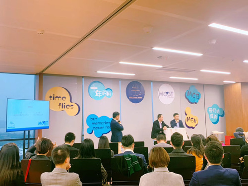 季诺、马屹、俞卫锋等领导也亲临现场,分享“亲历历史”的环节。他们为Moot Shanghai提供了慷慨帮助、热心支持,一路见证Moot Shanghai十年来一路发展为高水准、国际化、广受认可的一场竞赛,更见证了上政学子通过十年如一日的坚持成长到今日,能够自信、积极地在各个国际竞赛中代表中国面孔参赛。他们通过Q&A的形式,肯定了上海政法学院为推动Moot Shanghai作出的贡献,并表达了对Moot Shanghai、Moot Court Board、上政学子们的祝福与期望。