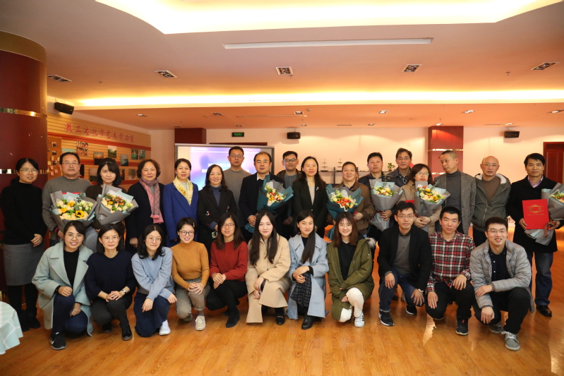 聘任仪式上,胡继灵依次为指导教师颁发聘书,青年教师为指导老师献上鲜花。