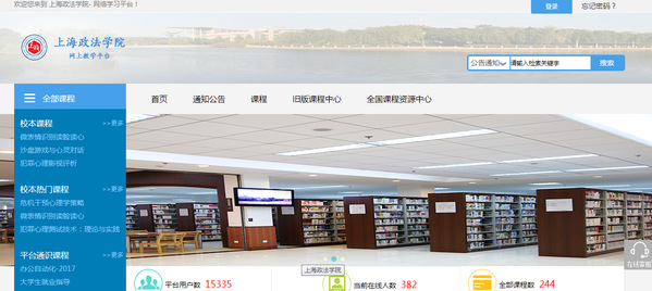 打开上海政法学院网络教学平台(http://shzfxy.fanya.chaoxing.com/),点击“登录”,账号:教务系统账号,初始密码:123456进行登录。学生登录账号为学号,密码123456。