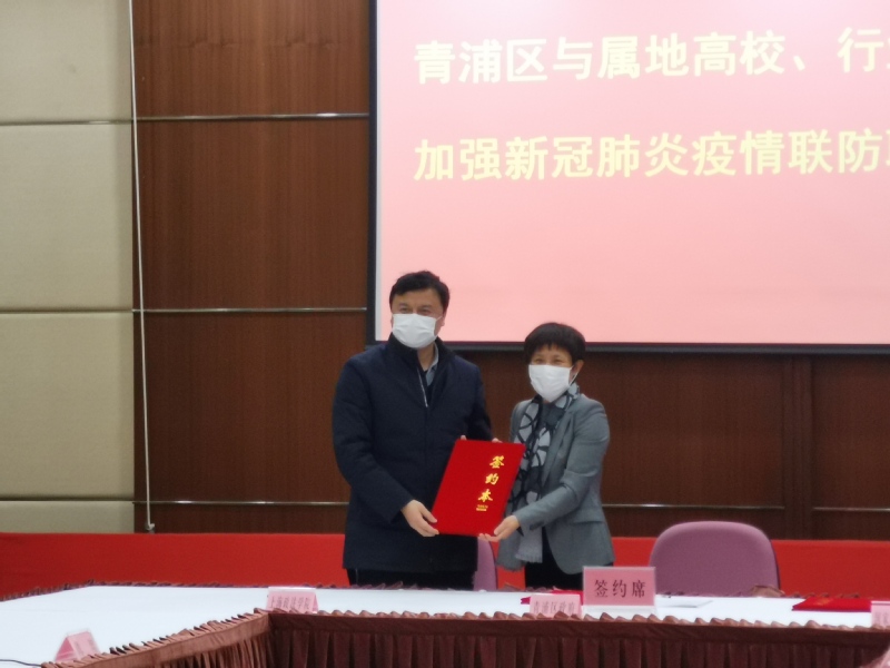 3月19日下午,青浦区与属地高校、行业中高职院校加强新冠肺炎疫情联防联控工作会议召开。青浦区委副书记杨小菁,区委常委、副区长孙挺,副区长金俊峰,区政协副主席、卫健委主任饶斐文,上海政法学院、国家会计学院、上海工商职业技术学院等驻青学校领导参加会议。我校党委副书记刘刚出席会议作交流发言,并与青浦区签订区校联防联控工作备忘录。会议由杨小菁主持。