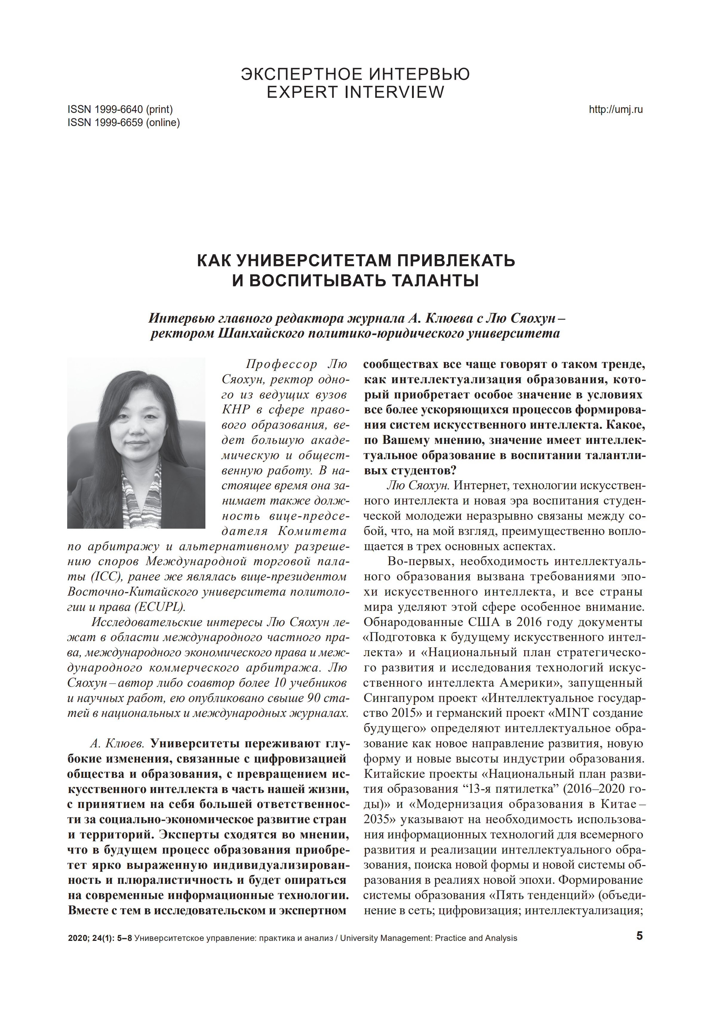 近日,刘晓红校长受聘担任俄罗斯《大学管理:实践与分析》期刊编委会委员,并应邀接受该刊主编Alexey Klyuyev的专访。刘晓红结合我校法学人才培养实践,以“大学如何吸引和培养人才”为主题,全面阐述了人工智能时代的法学新文科建设。
