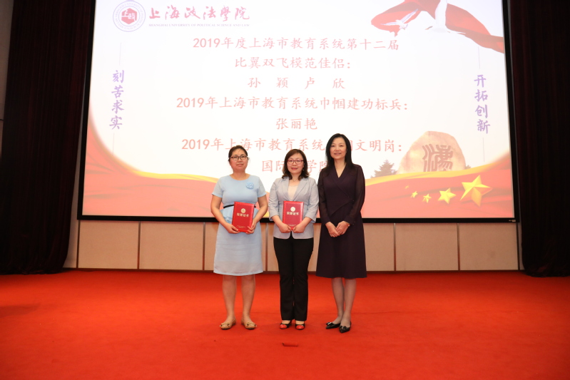 校领导还为获得2019年度上海市巾帼文明岗、2019年上海市教育系统巾帼文明岗、2019年上海市教育系统第十二届比翼双飞模范佳侣、2019年上海市教育系统巾帼建功标兵、2019年上海政法学院三八红旗手和三八红旗集体,以及2019年工会工作先进个人和团体等颁发了奖状。