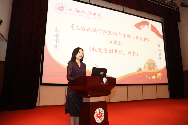 党委副书记、校长刘晓红向大会作了题为《抢抓历史机遇、勇担时代责任,为实现学校事业发展新突破而努力奋斗》的上海政法学院2019年学校工作报告。刘晓红指出,一年来,在校党委的领导下,在全校教职员工的共同努力下,学校紧紧围绕立德树人根本任务,大力实施一流本科和一流研究生教育计划,深入推进教育教学和体制机制改革,不断加强内涵建设,充分吸收各方办学资源,办学治校水平得到进一步提升,各项事业发展取得了新进展新成绩。刘晓红部署了2020年六个方面的重点任务:一是以坚持立德树人为根本,全面提升人才培养质量;二是以实施两级管理为抓手,推进内涵建设高质量发展;三是以深化“三全育人”为统领,努力增强大学生综合素质;四是以中国-上合基地为平台,提升服务国家战略能力和综合办学实力;五是以坚持质量优先为导向,不断提升国际化办学水平;六是以强化办学条件为保障,进一步提升管理服务水平。