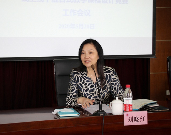 刘晓红在讲话中指出,为积极应对疫情,我校自2020年3月起全面开展了线上教学工作。全面实施线上教学对每所学校、每个教师都是全新挑战,也是促进教育教学与信息技术深度融合实践的机遇。为落实教育部关于“保证在线学习与线下课堂教学质量实质等效”的意见,积极推广“以学生为中心”的课堂教学模式改革,强化信息技术在课堂教学中的深度应用,促进教师更新教育理念,创新教学方法、教学模式,提升教育教学水平,结合本学期线上教学开展情况,学校组织开展“线上线下混合式教学课程设计竞赛”,可谓正当其时。她强调,针对目前“互联网+教育”“智能+教育”优势凸显、现代信息技术全面深度融入教与学过程的形势,学校应紧扣教育部一流课程建设规划,大力建设精品在线课程,推动课程“建以致用,用以促优”,开展线上线下混合式教学课程改革。她提出三点希望:一是各二级学院(部)要组织动员教师参加此次教学竞赛,以此为契机,推进混合式教学课程改革实践,提升教学水平和教学质量,打造在线课程与课堂教学相融合的一流课程;二是广大一线教师要充分利用前期线上教学实践中掌握的技能、积累的经验,顺势而为,让前期的线上教学演进为今后的线上线下混合式教学改革;三是教学管理部门、教师教学能力发展中心要在教师提升教学能力、信息技术能力,推进教学方法、教学模式改革实践等方面提供支持。