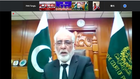 巴基斯坦最高法院大法官、中国-上合基地2019年校友马希尔·拉希姆在演讲中分享了去年参访中国法院的感受。他充分肯定了中国的发展,同时就建立上合国家和“一带一路”参与国之间的高效、透明且响应及时的司法和额外争端解决机制提出了四个阶段的建议。