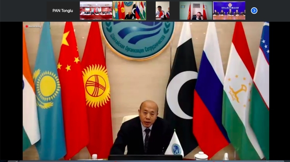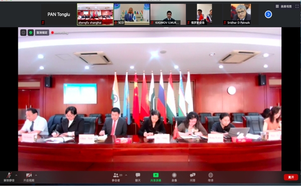 恰逢上合组织成立十九周年之际,6月16日下午,中国-上海合作组织国际司法交流合作培训基地成功举办校友网络论坛。公安部国际合作局副局长牛海峰,上合组织秘书处副秘书长谢小用,上海政法学院副校长胡继灵,上海市公安局指挥部副主任董斌等和来自印度、吉尔吉斯斯坦、俄罗斯、乌兹别克斯坦、巴基斯坦等国家的校友和有关组织代表一同视频出席活动,就“新形势下上合司法命运共同体构建的机遇与挑战”展开线上研讨与交流。论坛由中国-上合基地办公室培训部副主任印晓慧主持。