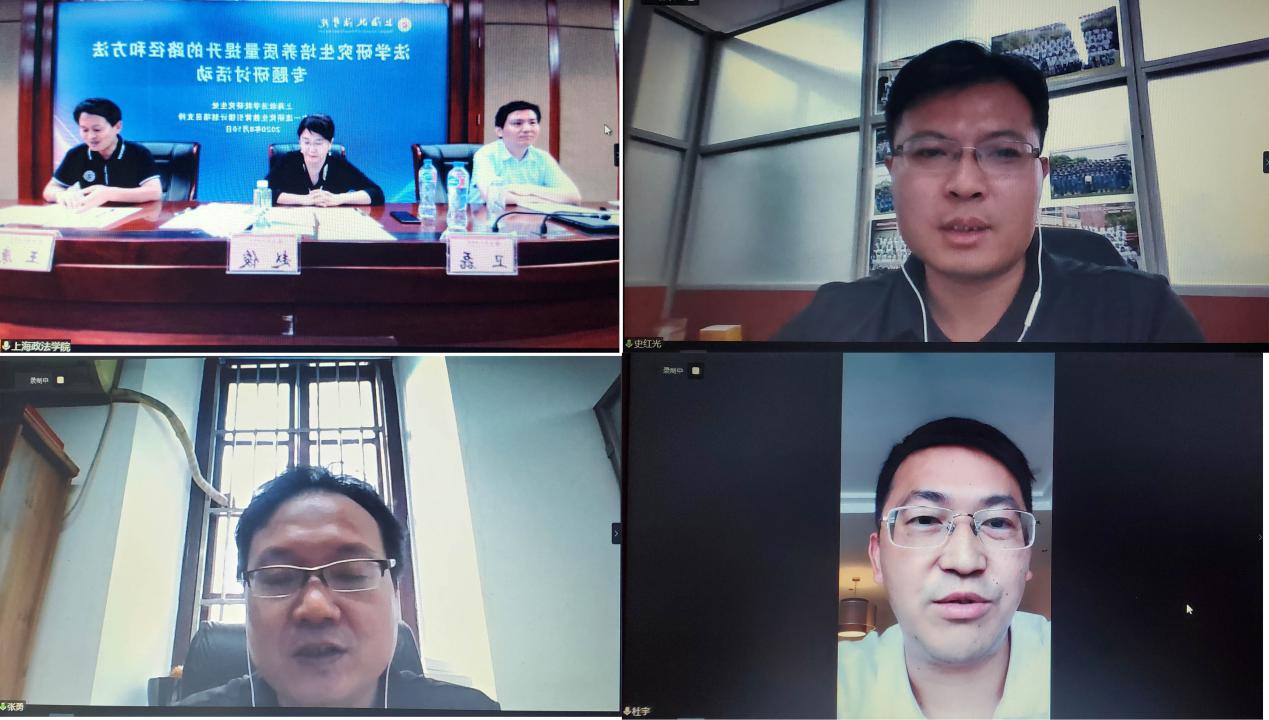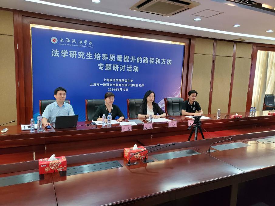 8月10日下午,由我校研究生处主办、上海市一流研究生引领计划项目支持的上海政法学院“法学研究生培养质量提升的路径和方法”专题研讨活动在求实楼413会议室和腾讯会议平台成功举办。专题研讨活动由研究生处处长赵俊主持。