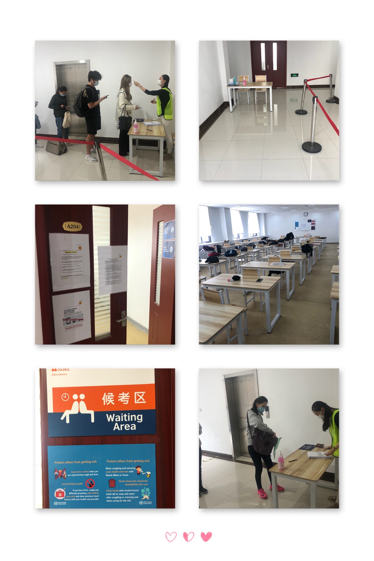 普陀校区坐落上海西站,交通便捷,环境优美。为考试顺利进行,校方工作人员牺牲国庆假期时间,加强防疫防范工作,从引导学员核验健康码、测量体温、填写健康承诺文件,到考试全程佩戴口罩等做到万无一失,让学生及家长都能放心考试。(王颖 供稿)