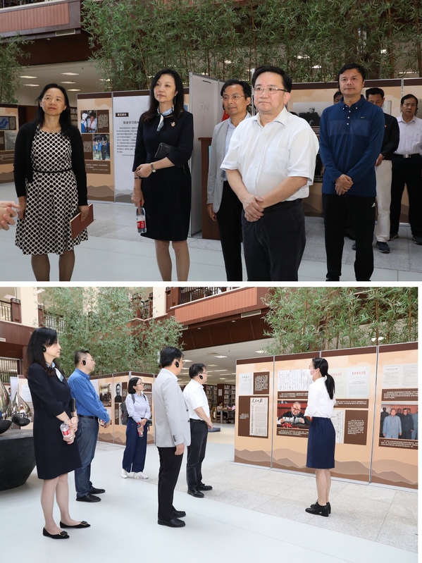 与会同志跟随讲解员步伐,在图书馆一楼专题展厅聆听讲解、参观学习。“陈云精神风范专题展”共分五个专题,分别是“坚定理想信念”“坚强党性原则”“求真务实作风”“朴素公仆情怀”“勤奋学习精神”,展览以详实的图片资料,生动的语言文字,展示了陈云同志的生平业绩和奋斗历程、崇高风范和高尚品格。大家纷纷表示,现场的学习让自身思想受到深刻洗礼,更加深入领会共产党人的初心使命,要不断继承和发扬陈云同志的伟大精神,将其转化为做好日常各项工作的强大精神动力。