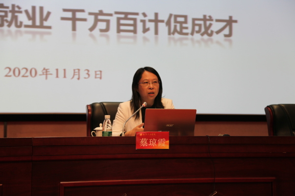 刘晓红表示,后疫情时代我校毕业生整体就业形势依然严峻,“慢就业”“懒就业”现象日益突出,还存在诸如就业工作结构矛盾突出,人才培养和社会需求存在一定程度脱节,对就业堵点缺少统筹推进的有效举措,毕业生就业指导队伍单一,协同不够等问题。她强调,2021届毕业生就业工作要重点把握以下几点:一是加强统筹推进、层层压实主体责任;二是做好指导服务,积极转变毕业生“缓就业”心态;三是坚持多措并举,努力破解供需“错配”难题;四是鼓励走向基层,把个人理想融入国家发展大局。全校上下要努力提高政治站位,主动担当负责,加强统筹协调和政策支持,坚决打好2021届毕业生就业攻坚战。