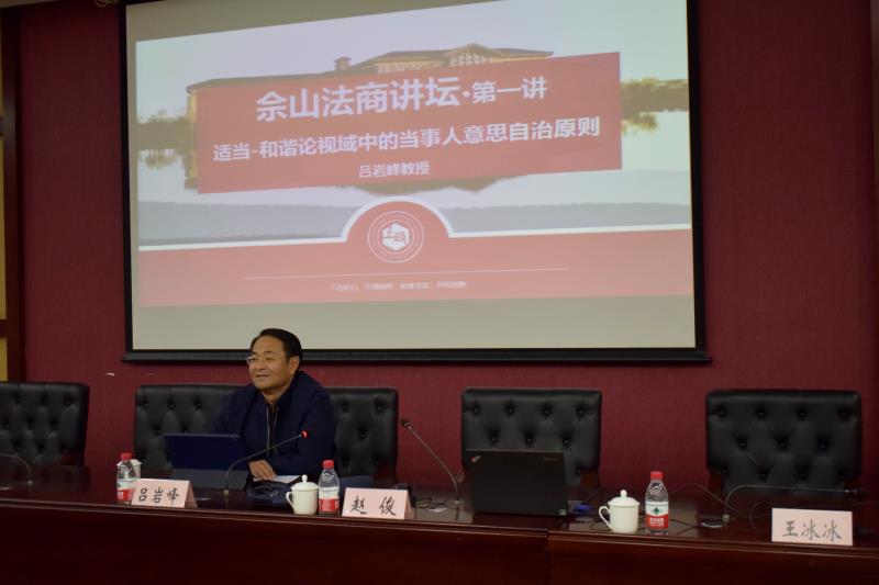 11月4日下午,我校“佘山法商讲坛”第一讲通过线下线上相结合的方式举行。中央马克思主义研究和建设工程(国际私法学)首席专家、中国国际私法学会副会长、中国行为法学会常务理事、吉林大学教授吕岩峰为我校师生作题为“适当-和谐论视域中的当事人意思自治原则”精彩演讲。