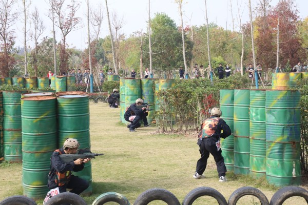 野战运动是一种集军事和游戏于一体、紧张刺激的高科技娱乐活动,使用模拟类游戏战术发射器(BB弹、水弹、彩弹、激光等各类对抗发射器械),身着战术装备以及各种款式的军装、护具,进行团队模拟军队作战训练。本届比赛设置了单人步枪射击(三姿射击)、三人障碍越野(绕杆、牵引横渡、匍匐前进、投弹和速射),考验队员的稳定性、精准度、耐力和协调能力。五人对抗项目则考验队员们的技战术水平和团队合作意识。