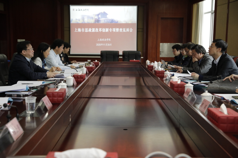11月27日上午,以上海理工大学党委书记吴坚勇为组长,上海理工大学党委副书记、纪委书记刘道平为副组长,上海大学马克思主义学院院长孙伟平、上海应用技术大学马克思主义学院院长李国娟、上海健康医学院马克思主义学院院长孙玉良等为成员的上海市高校思想政治理论课改革创新第七督查组来我校督查工作。校党委书记夏小和出席督查见面会并作思想政治理论课改革创新情况汇报,校党委副书记、纪委书记潘牧天,副校长胡继灵以及党委组织部、党委宣传部、人事处、教务处、计财处、马克思主义学院等相关部门负责同志出席见面会。