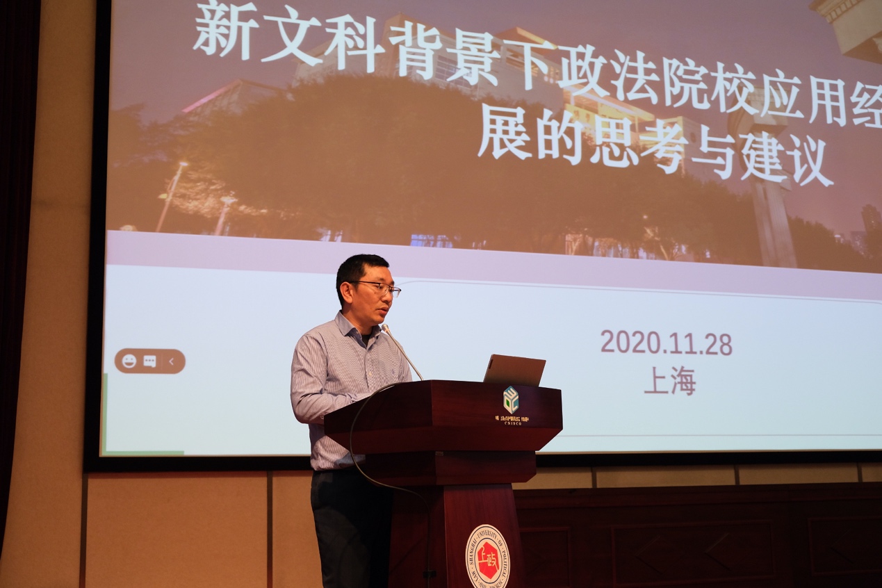 董守海围绕“法商融合:新文科背景下商科人才培养”提出几点思考。董守海认为,经贸法学是未来学生的核心竞争力,也是政法院校最鲜明、最核心的特色,也是未来进行事实研究的核心。董守海强调“校企融合”的重要性,校企联合可以更好地培养应用型人才。同时提出“校际融合”“开放办学”模式,旨在开拓学生视野。他强调“新文科建设最关键的是老师”,老师一定要有创新思维,积极鼓励老师创新,否则很难实现新文科建设和培养高层次的新文科人才。