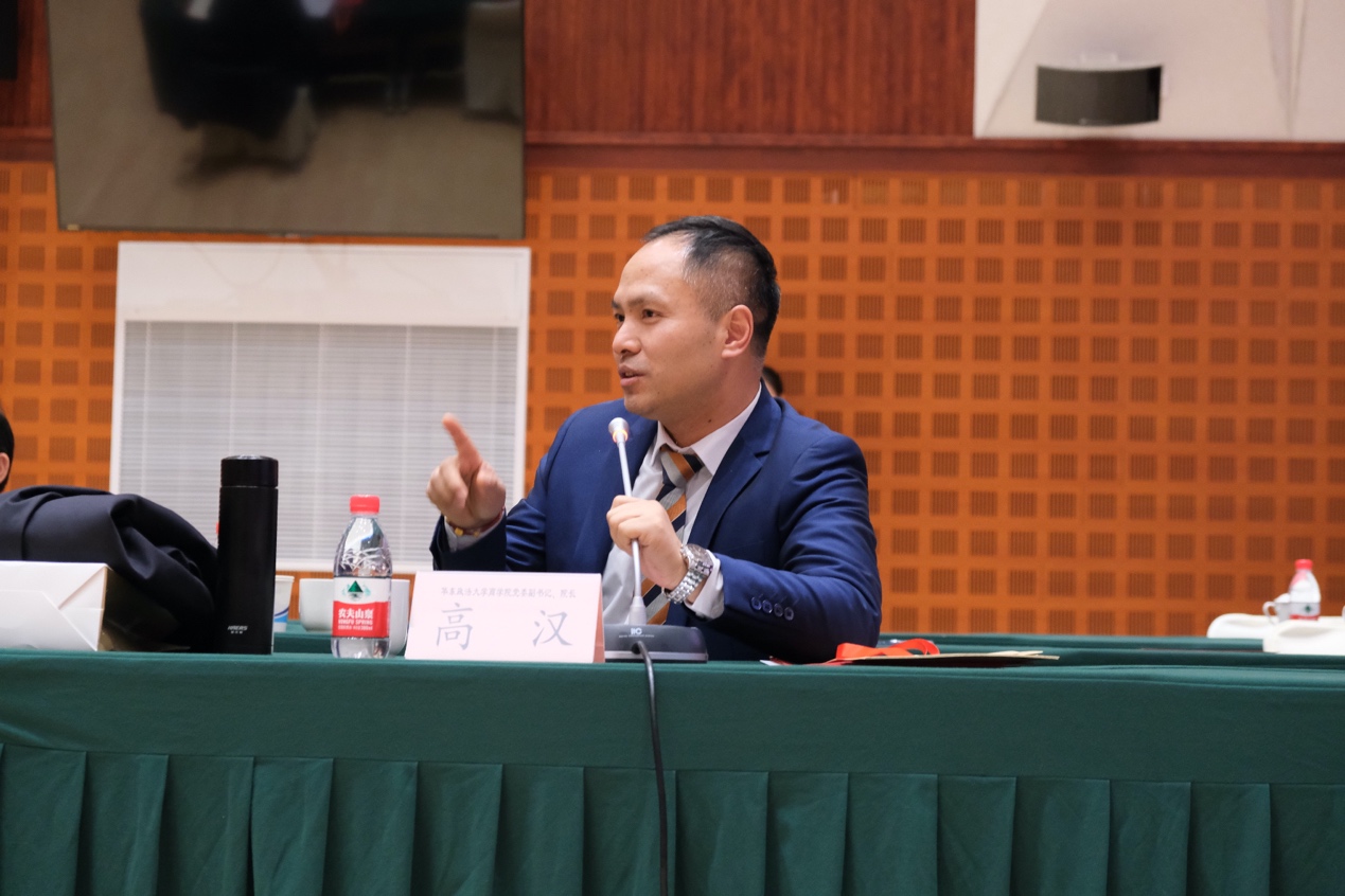 黄瑞衔围绕“新文科背景下的法商融合发展及中西方教育差异探索”主题进行报告发言。黄瑞衔就《新文科建设宣言》提出自己的几点思考。提升综合国力需要新文科,一个国家的发展水平,既取决于自然科学发展水平,也取决于哲学社会科学发展水平,他强调哲学学科对新文科建设具有重要教育意义。最后,他引用“只有科学、科技、哲学、宗教、文艺、人格养成教育回归一体,回归本位,均衡发展,才有希望。”引发了大家对于新文科建设的进一步思考。