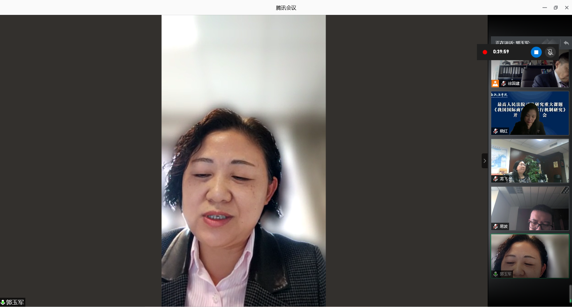 郭玉军建议,课题组在研究过程中,可对国际民商事诉讼领域一些新的发展趋势,以及与国际民事诉讼领域和国际商事争端调解密切相关的一些公约多加关注。她十分认同报告中所呈现出的问题清单研究形式,并希望课题组继续沿用。针对管辖权、诉讼程序优化、上诉权利在内的具体问题,她也提出了详细的意见。