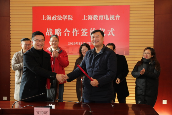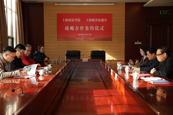 12月17日上午,上海政法学院与上海教育电视台战略合作签约仪式在我校青浦校区举行。上海开放大学党委副书记、副校长、上海教育电视台台长孙向彤,上海教育电视台总编室主任王东雷,上海教育电视台新闻中心主任金山出席仪式。受临时赴外省市开会的刘晓红校长委托,校党委副书记刘刚会见孙向彤一行并与其签约共建。上海纪录片学院理事长戴元光、合作发展处处长王晓宇、上海纪录片学院副院长邢虹文等出席并见证了签约。王晓宇主持签约仪式。