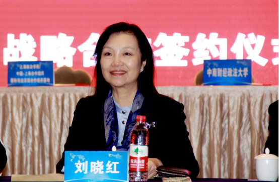 刘晓红在致辞中详细介绍了上海政法学院、中国-上合基地的发展历程,并高度赞扬中南财经政法大学的发展与积累。她表示,希望以此次活动为契机,增进两校之间的沟通交流,增强互信互利,深化各领域合作。