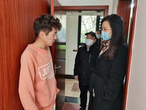 随后,刘晓红一行又来到学生公寓,看望慰问中外留校学生。刘晓红与留校学生亲切交流,仔细询问他们假期期间的生活情况,叮嘱有关部门切实关心关爱留校师生,保障食品物资供应,为留校师生提供便捷舒适的生活条件,确保他们在学校度过一个欢乐祥和的春节。