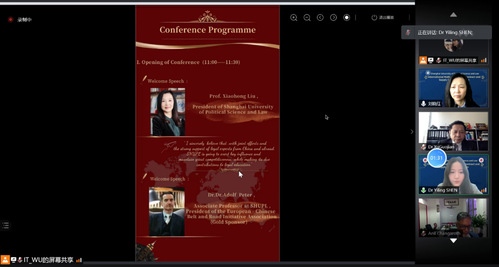 开幕式上,上海政法学院校长刘晓红和国际法学院副教授Adolf Peter分别进行了欢迎致辞。刘晓红代表我校热情欢迎参会的各位专家学者并介绍了学校的基本情况,表达了上海政法学院积极参与国际交流的期待以及培育高端涉外法治人才的决心。她肯定了本次国际研讨会的重要意义,并预祝研讨会顺利开展。