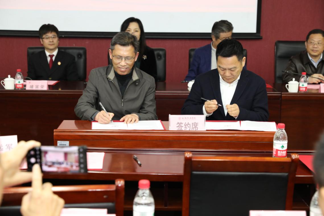 宣读《丝绸之路律师学院与泰顺县上海企业商会合作共建协议》后,郭斌与陈平签署了《合作共建协议》,并举行了“丝绸之路律师学院与泰顺县上海企业商会共建基地”揭牌仪式。