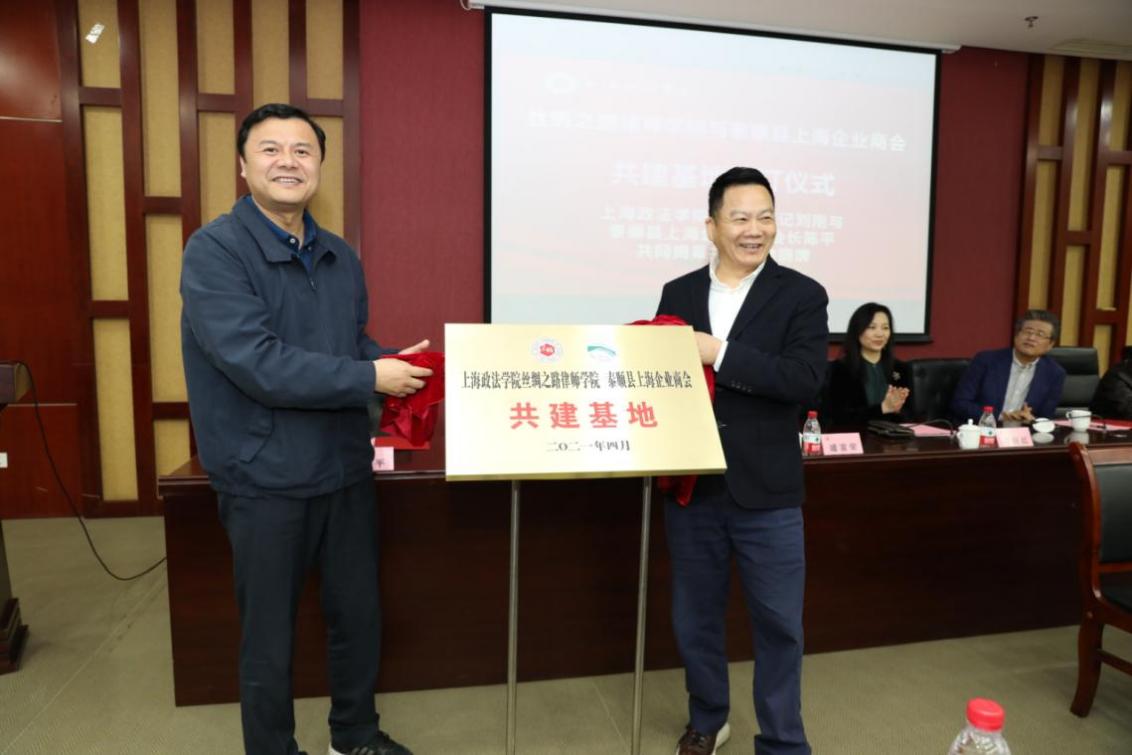 宣读《丝绸之路律师学院与泰顺县上海企业商会合作共建协议》后,郭斌与陈平签署了《合作共建协议》,并举行了“丝绸之路律师学院与泰顺县上海企业商会共建基地”揭牌仪式。