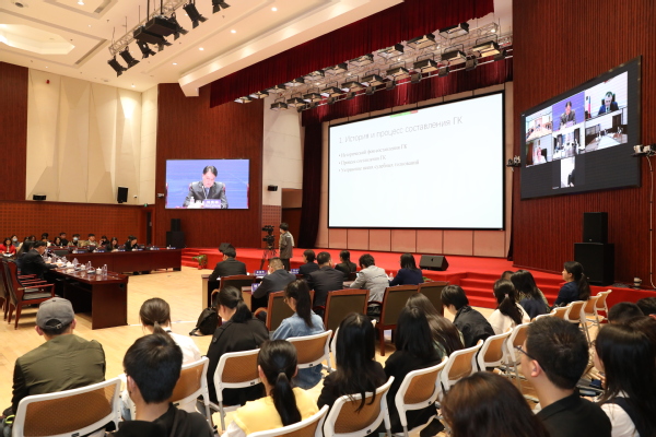 4月21日下午,最高人民法院审判委员会专职委员、二级大法官刘贵祥在中国-上合基地为上合组织国家法官研讨班学员授课,主题为“中国民法典的基本结构与时代特色”。上海政法学院校长、中国-上合基地办公室主任刘晓红主持授课环节。来自哈萨克斯坦、俄罗斯、塔吉克斯坦、乌兹别克斯坦共27名法官进行了线上学习。近百名嘉宾和师生在现场参与了活动。
