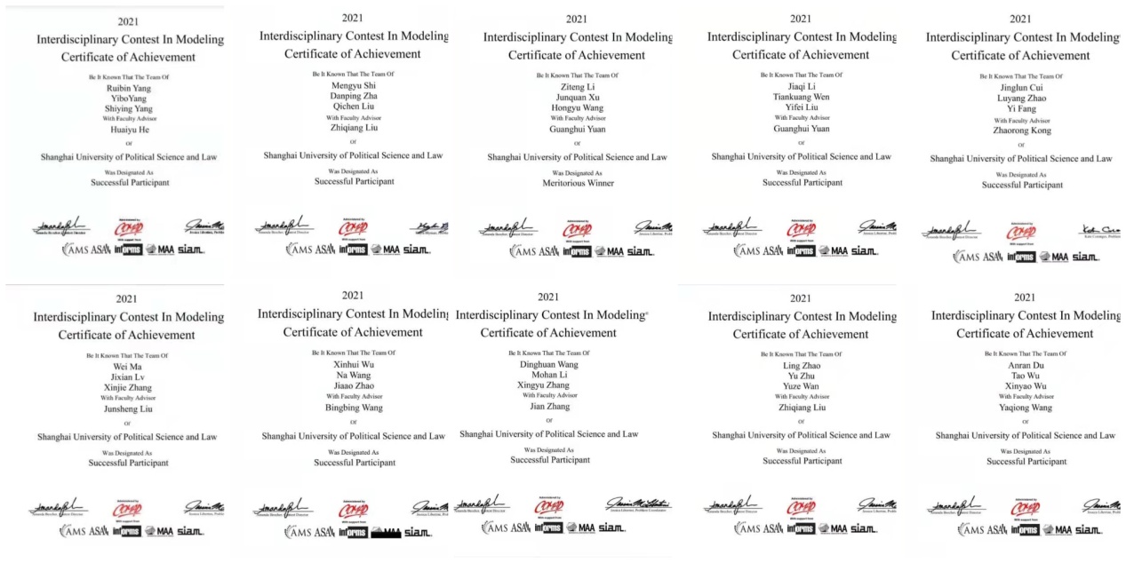 2021年美国(国际)大学生数学建模竞赛(MCM/ICM)成绩日前揭晓,我校经济管理学院继在2020年度赛事中取得一等奖后再创佳绩,斩获了一等奖(Meritorious Winner)1项、三等奖(Successful Participant)9项,创下我校历年来在该赛事中斩获国际奖项数量之最。