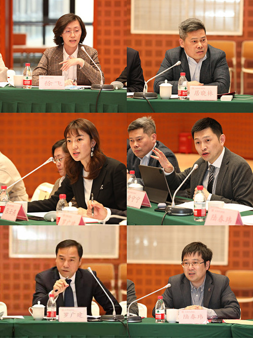 之后,与会代表就人才培养方案以及涉外律师人才培养的主题进行了交流和研讨。中国海事仲裁委员会上海总部副秘书长徐飞结合过往经历,重点就如何提升中国律师在世界舞台上的话语权和影响力表达了自己的见解。北京金诚同达(上海)律师事务所管理合伙人张云燕围绕如何发挥上海政法学院在法律硕士(涉外律师)培养上的自身特长和优势,以及如何对学生开展高质量的实习等方面提出建议。上海市海华永泰律师事务所管理合伙人罗广建主张分三个阶段进行涉外律师的人才培养工作,推行每学期分阶段式实习,以提高实习的效益。上海段和段律师事务所副主任、合伙人居晓林结合上海政法学院特色,就法律硕士专业学位(涉外律师)研究生培养项目开设三个招生方向表示了认可和肯定,并指出三个招生方向都应进行科学的课程和实习安排。国浩律师(上海)事务所管理合伙人黄宁宁结合自身学习英语的经历,就如何提升学生的外语水平、文书写作水平以及课程的设置提出了自己的见解和建议。上海仲裁委员会副秘书长陆春玮在总结上述发言的基础上,对于三个招生方向如何进行高质量、高效益的课程和实习安排提出了建设“五个一”的人才培养目标。