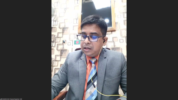 孟加拉国最高法院高等法院司副注册官、联合地区法官沙米姆·苏法作为学员代表致辞。他表示,很高兴参与此次研修班,同时非常感谢中国对孟加拉国的疫苗援助。新冠肺炎疫情虽然阻隔了线下的相聚,却阻挡不了各国发展线上合作交流的脚步。期待通过此次研修班深入了解中国的法律文化和服务,学习共享虚拟法庭和智慧法院的实践经验。