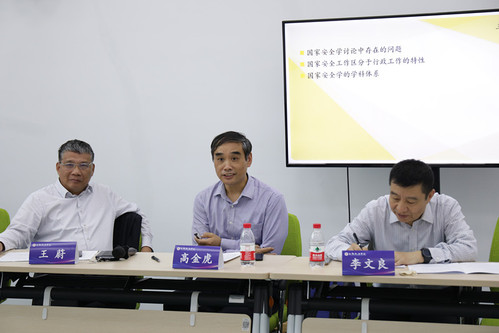 主旨发言下半场主题为“国家安全学学科建设”,由国际关系学院研究生部主任李文良主持。上海科技大学党委副书记吴强作“急需建立‘1+X’的国家安全学科建设体系”主旨发言;国际关系学院教授刘跃进作“国家安全学科建设的几个关键问题”主旨发言;上海市学位办主任束金龙作“学科与学位建设”主旨发言;清华大学社会科学学院副院长赵可金作“关于国家安全学科建设的思考”主旨发言;北京外国语大学国际关系学院院长谢韬作“对国家安全学科建设的几点思考”主旨发言。