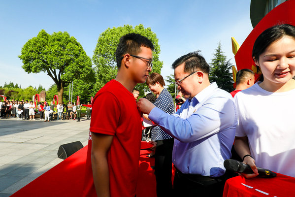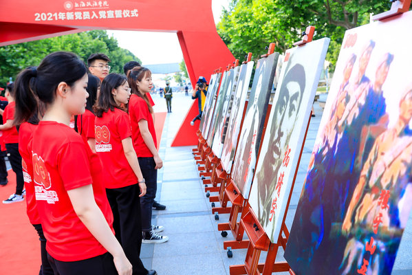 上午7时许,新党员们经过“入党门”“英雄墙”步入仪式现场,并在“入党门”的门柱上踊跃签名,表达“今日迈入党的门,此生誓做党的人”的心声。
