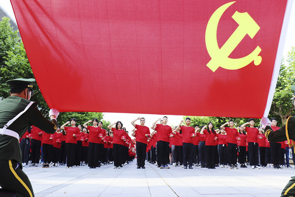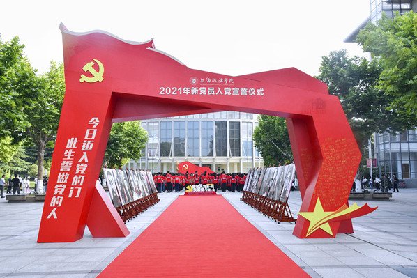 迎百年华诞,为信仰立誓。5月31日上午,上海政法学院在庸夫广场举行2021年新党员入党宣誓仪式。394名新党员在朝阳的映照下,面向党旗庄严宣誓,并以“百年接力、强国有我”的创意造型致敬建党百年。