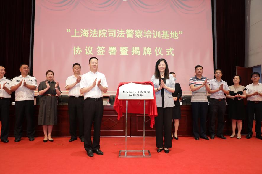协议签订后,刘晓红与谭滨共同为“上海法院司法警察培训基地”揭牌。