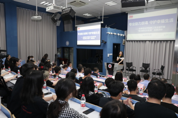 本次实践活动的主题是“专业助力禁毒,守护幸福生活”,主要包括党史学习教育分享、禁毒志愿者协会工作掠影、禁毒热点难点问题专业工作坊研讨会等部分。上海市青东强制隔离戒毒所党委委员、副所长王斌带领警长陈峰、张朝敬、卫星明和一级警员王闯等团队成员参加活动。刑事司法学院党总支书记姚善英、院长彭文华,副院长、教工党支部书记王娜、全体教工党员及部分学生参与活动。活动由刑事司法学院党总支副书记张丽艳主持。