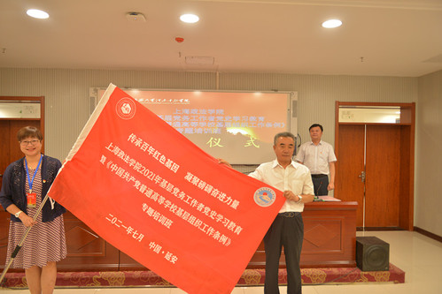 开班仪式上,苏醒仁代表延安大学致欢迎辞,他全面介绍了延安大学和泽东干部学院的基本情况,并为培训班学员代表,校党委常委、组织部统战部部长王静授予班旗。