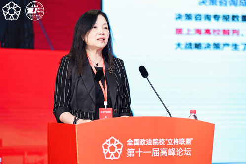刘晓红代表上海政法学院在论坛上作了题为“以强化‘四个特色’为着力点 努力推进学校高质量发展”的主题发言,聚焦强化人才培养、学科建设、服务国家和开放办学“四个特色”,得到了与会专家学者的高度认同。