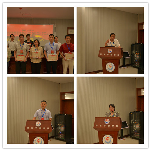 结业仪式上,学校党办副主任、党史学习教育会务秘书组组长丁永建,法律学院党总支书记文立月,经济管理学院专职组织员徐璐作为学员代表先后作了学习交流发言。学校党委常委、组织部统战部部长王静,学校党委常委、宣传部部长、党办校办主任高志刚,延安大学泽东干部学院副院长郭东军为学员代表颁发结业证书。