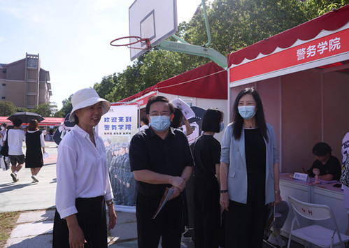 在新生报到点,校领导逐一了解各二级学院新生报到情况及迎新工作安排。看到各学院领导班子成员、辅导员、学生志愿者汗流浃背,但是工作一丝不苟、认真高效,校领导给予充分肯定,要求各二级学院克服疫情和高温影响,全力为每一位新生做好报到服务工作,让他们切实感受到上政大家庭的温暖,让因落实疫情防控要求而不能进校的学生家长放心。