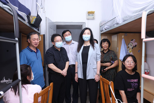 校领导一行首先来到校门口、短驳乘车点等处,仔细了解学生报到流程和进度,叮嘱学工部、保卫处、后勤保障处、团委等部门负责同志在校门口等重点部位加强人员值守和交通疏导,落实落细疫情防控措施,确保新生报到安全、顺利。